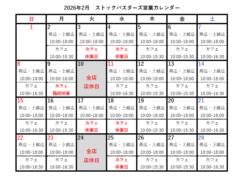 ◎燕店・上越店・・・2/10(火)、2/24(火)